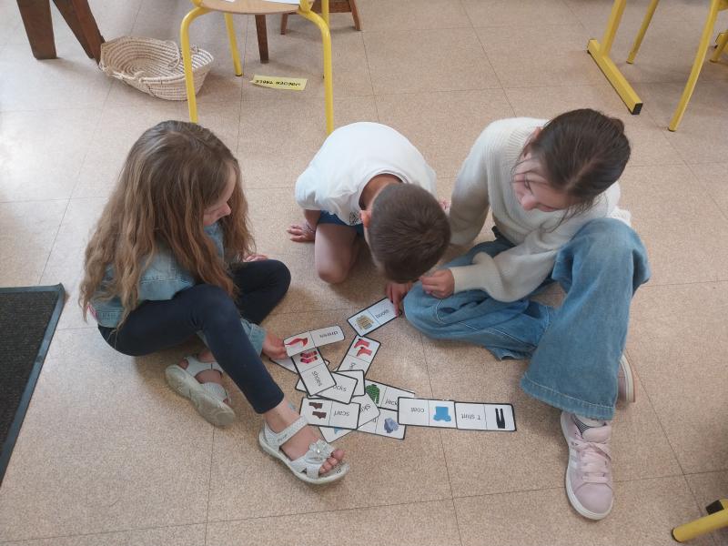 Tout au long de la matinée, les enfants ont partagé différents ateliers dans chacune des classes. Jeux, chants et échanges autour de la langue ont permis à tous de mieux se connaître et de s’apprivoiser.