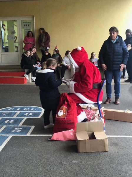 Le père-noël est passé le vendredi 19 décembre pour apporter à chaque classe des cadeaux. Tout le monde a reçu plein de jeux, de livres ou accessoires pour la classe. Il ne reste plus qu’à les utiliser.