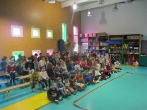Vendredi 19 décembre, tous les élèves se sont retrouvés pour la 2ème fois dans la salle de motricité pour présenter un travail par classe.