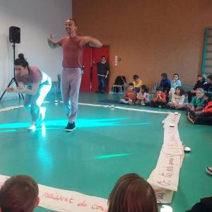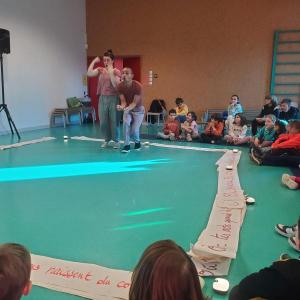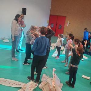 Vendredi 19 décembre, tous les élèves se sont retrouvés pour la 2ème fois dans la salle de motricité pour présenter un travail par classe.