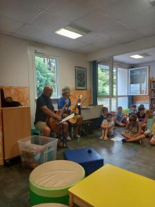 Soirée musicale avec les voisins (autre classe accueillie dans le centre) animée par nos accompagnateurs musiciens !