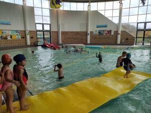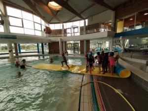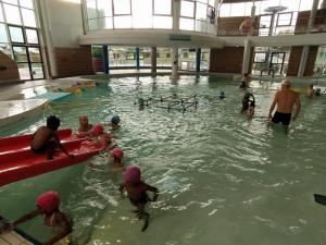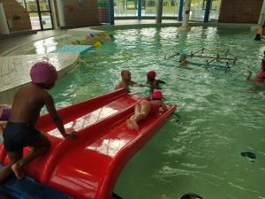 D’abord, depuis la fin du mois d’avril, tous les vendredis matins nous allons à la piscine « L’Aquabulle » avec Isabelle, Valérie et des papas, des mamans et des mamies. On y a fait de petites activités dans l’eau, des petits jeux, des parcours avec toboggan, tapis… C’est vraiment super génial !! Voici des photos de « L’Aquabulle » :