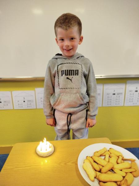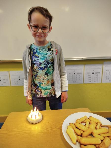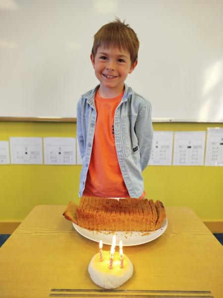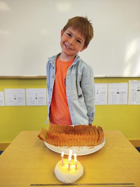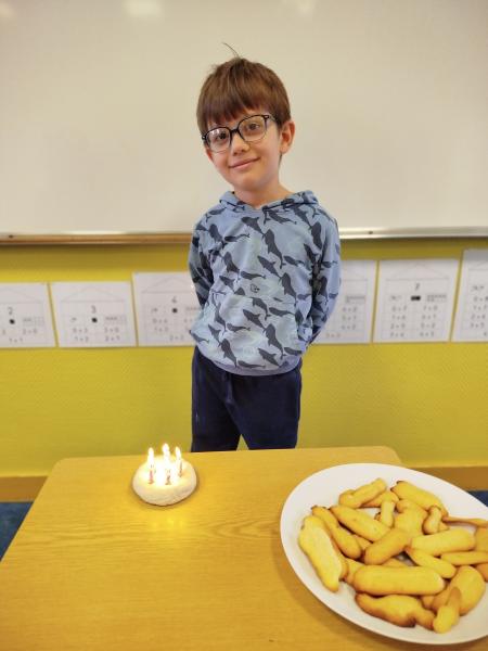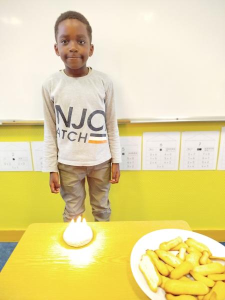 Et puis, au mois d’avril, c’était l’anniversaire de Gaspard. Il a soufflé ses 6 bougies sur un gâteau préparé par les enfants de la classe de Martine. Bon anniversaire Gaspard !!