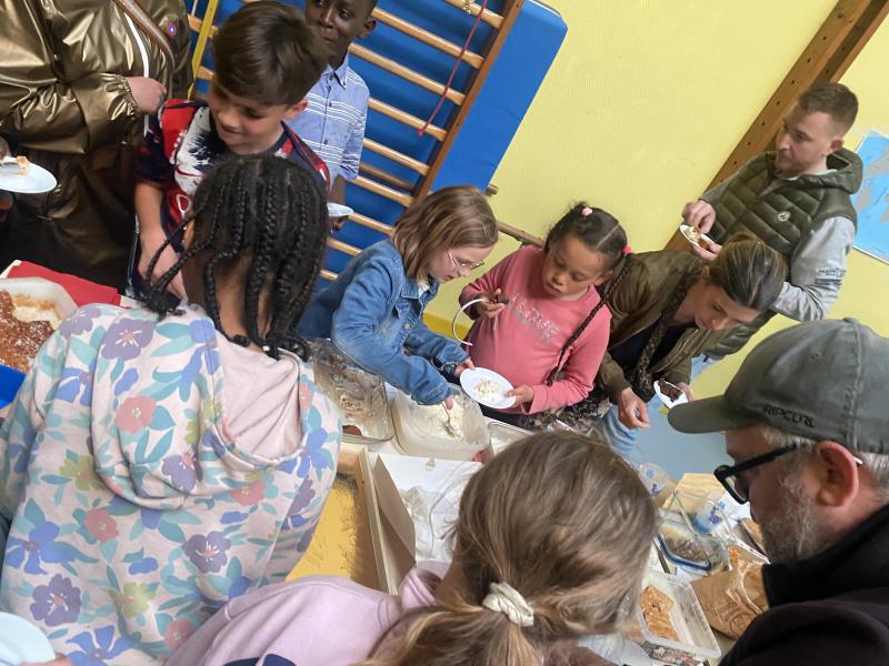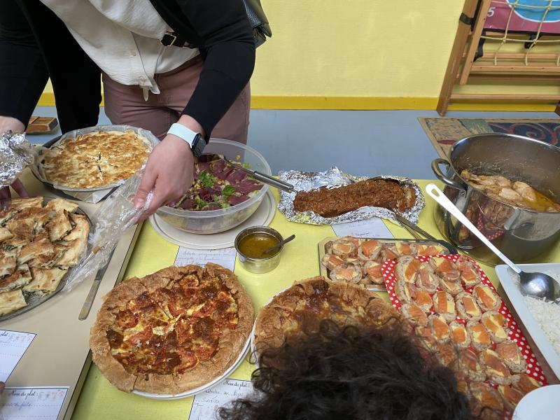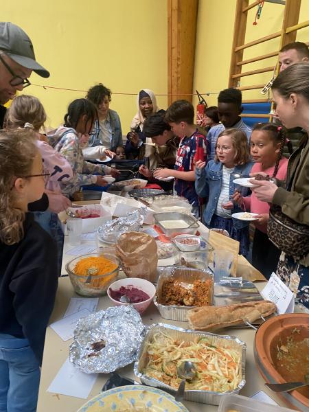 Sinon, le vendredi 25 avril, il y a eu une soirée multiculturelle à l’école. Les familles devaient venir avec quelque chose à manger et à partager avec tout le monde. C’était une très belle soirée, très conviviale. Voici des photos :