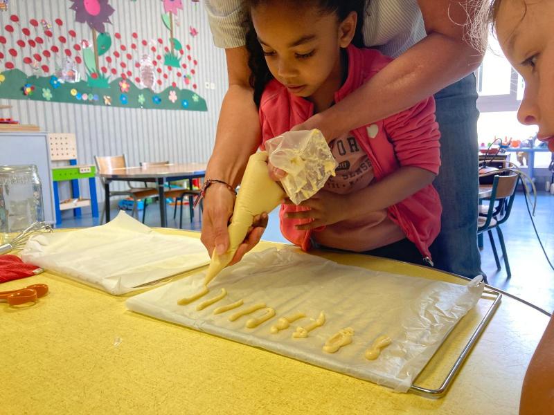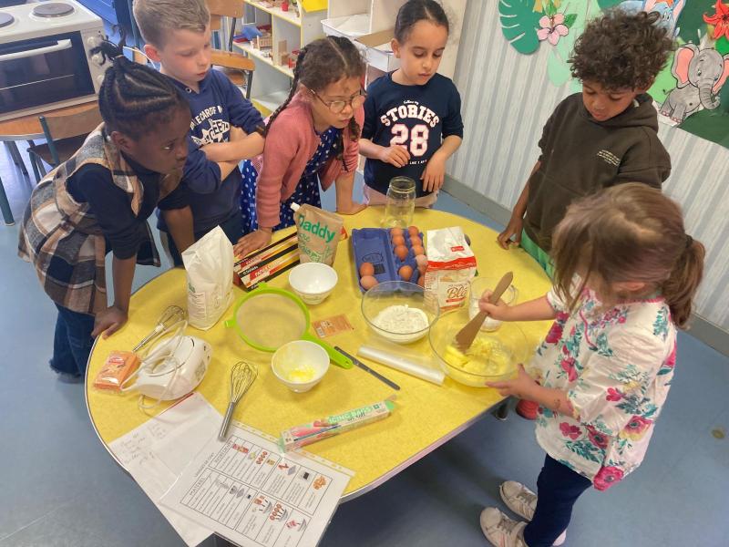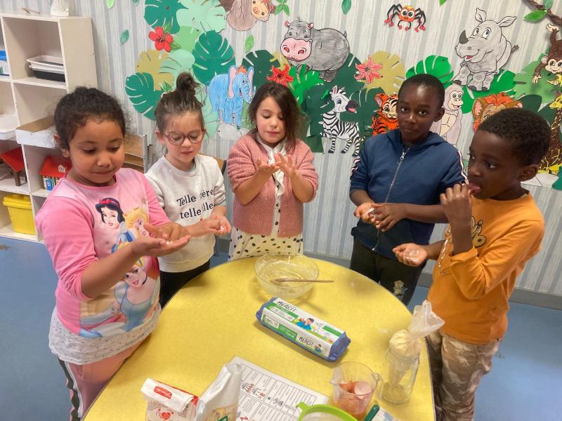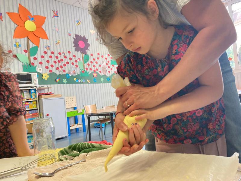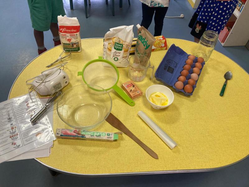 La semaine dernière, nous avons fêté les anniversaires des enfants nés en mai. Pour cela, nous avons cuisiné des « langues de chats ». Pour faire cela, il nous faut des chats. Donc, nous avons mis plein de pièges pour attraper des chats tout autour de l’école. Une fois, les chats capturés, il faut leur couper la langue. Avec de la pâtée, ils tirent la langue pour la manger et on en profite pour leur couper la langue avec des ciseaux…