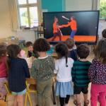 De retour en classe, nous avons visionné des images du spectacle et travaillé dans les ateliers sur ce que nous avions vu.