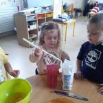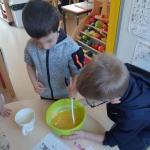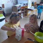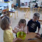 Nous avons d’abord mélangé les oeufs, le sucre, la farine, la levure et le sucre vanillé.