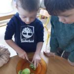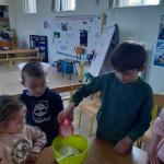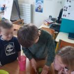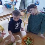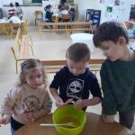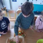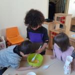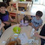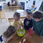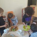 Pour célébrer les anniversaires des élèves nés au mois d’avril, nous avons préparé un gâteau au kiwi.