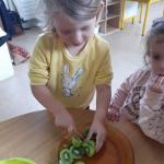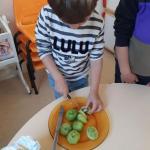 Nous avons ensuite découpé les kiwis en tranches avant de les disposer dans le plat.