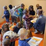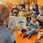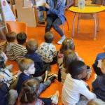 Lors de notre visite du lundi 5 mai matin, Emilie nous a présenté 2 nouveaux albums: Plouf et Nouille et Parfois, on tombe. Elle a commencé par la lecture de Plouf et Nouille.