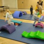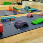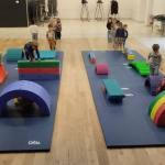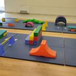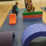 Au fil des séances, nous faisons évoluer le parcours en modifiant la disposition des éléments et les modalités de franchissement.