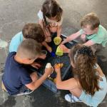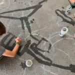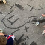 Nous pouvions également réaliser de beaux dessins sur le sol avec de l’eau et un pinceau.