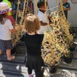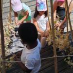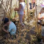 Fin mars, nous avions installé un tipi végétal avec des pots, des tiges de bambous et semé des petits pois à rames.