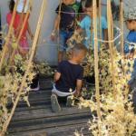 Les petits pois avaient bien poussé, ce qui formait de belles parois à notre tipi.
