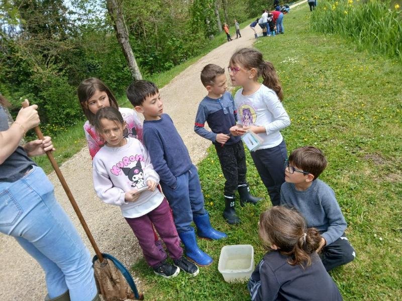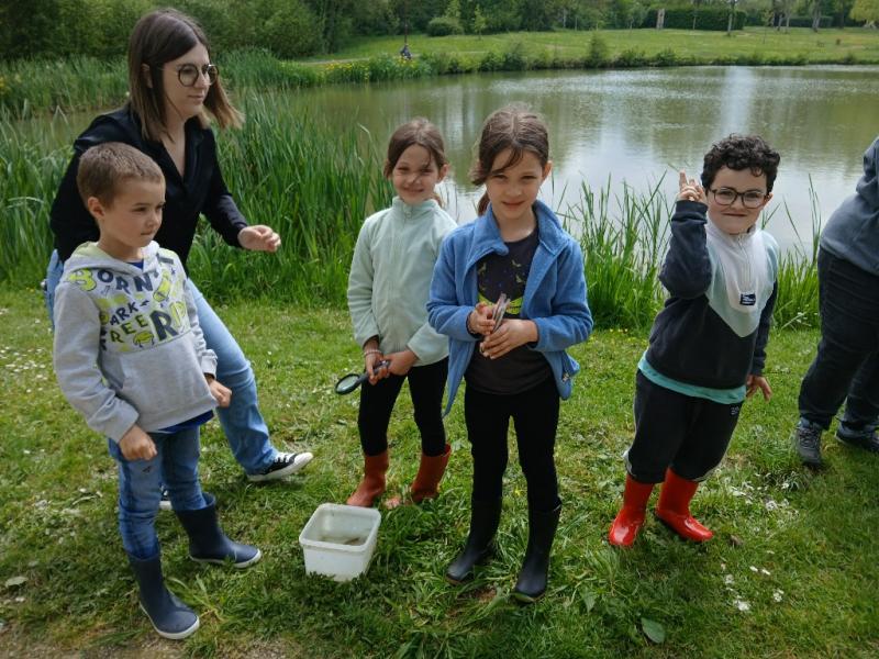 Vendredi 25 avril, les CP sont allés au plan d’eau avec une animatrice, Julie, pour en étudier la faune. Au programme, pêche, observation et identification.
