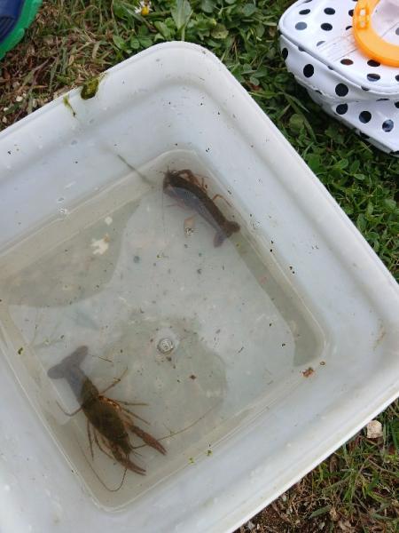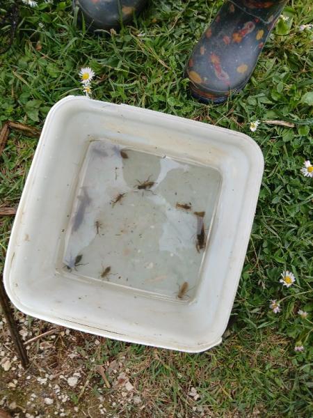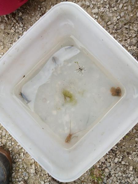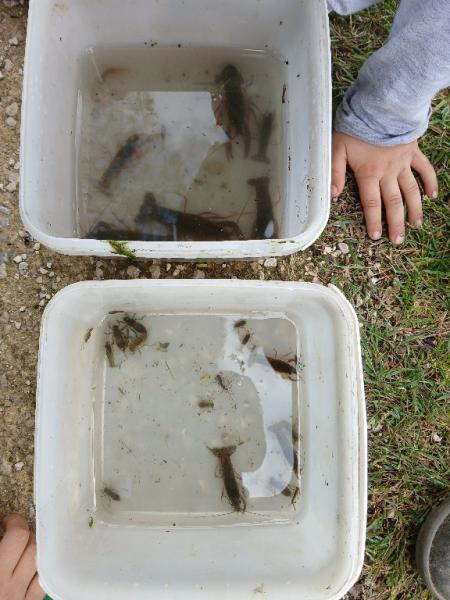 On a pêché plein d’insectes différents : des larves de libellules et de moustiques, des dytiques, des gerris, des chironomes… Nous avons vu des demoiselles bleues et entendu des grenouilles. Mais nous avons aussi pris beaucoup d’écrevisses de Louisiane ; c’est une mauvaise nouvelle car elles font des trous dans les berges et mangent tous les autres animaux de l’étang. En plus, elles sont capables de se déplacer « à pied » vers un autre plan d’eau.