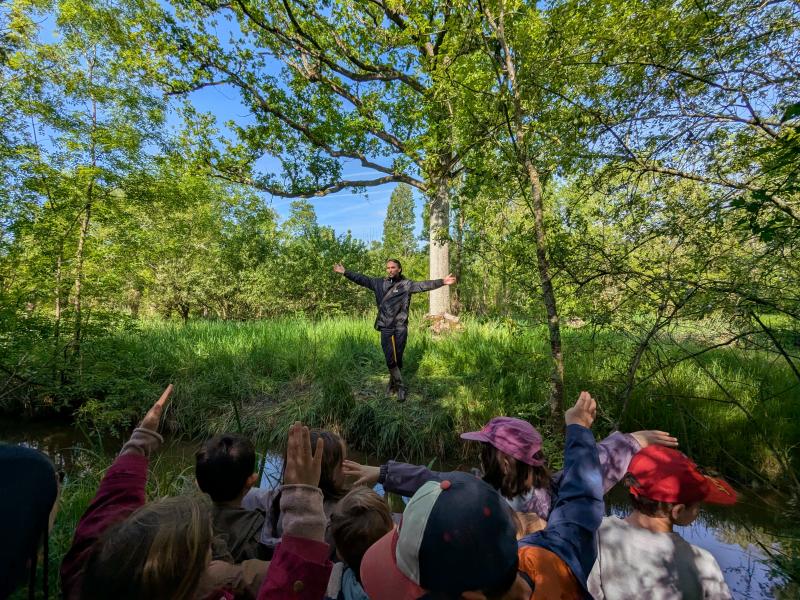 Vendredi 25 avril, nous sommes allés visiter la réserve des huttes à Nalliers. Le matin, nous nous sommes promenés dans le marais avec Rudy, un animateur, pour observer les arbres et les animaux. L’après-midi, nous avons découvert comment reconnaître les animaux grâce aux indices qu’ils laissent dans la nature : les traces, plumes, crottes, poils, chants…