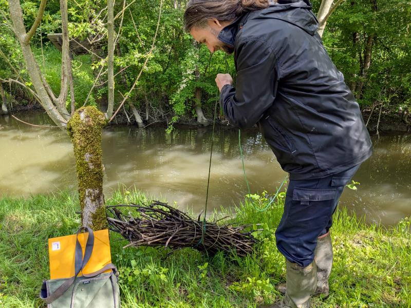 Il a pêché des anguilles avec un fagot de bois.