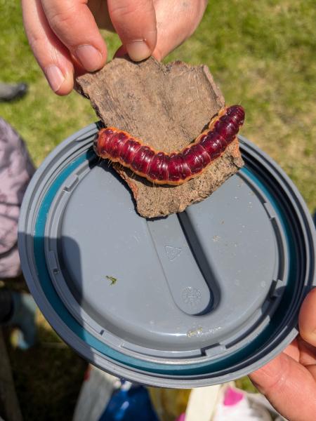 Pendant le pique-nique, nous avons vu une énorme chenille : le gâte bois. Elle mange le bois et se transforme en papillon de nuit.
