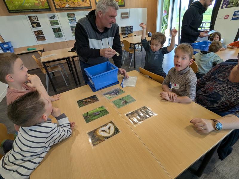 Nous avons reconnu des animaux grâce à des indices : la fourrure du renard, les crottes du lièvre, la plume de la chouette, le bois du chevreuil, l’œuf de la cane et la plume du geai.