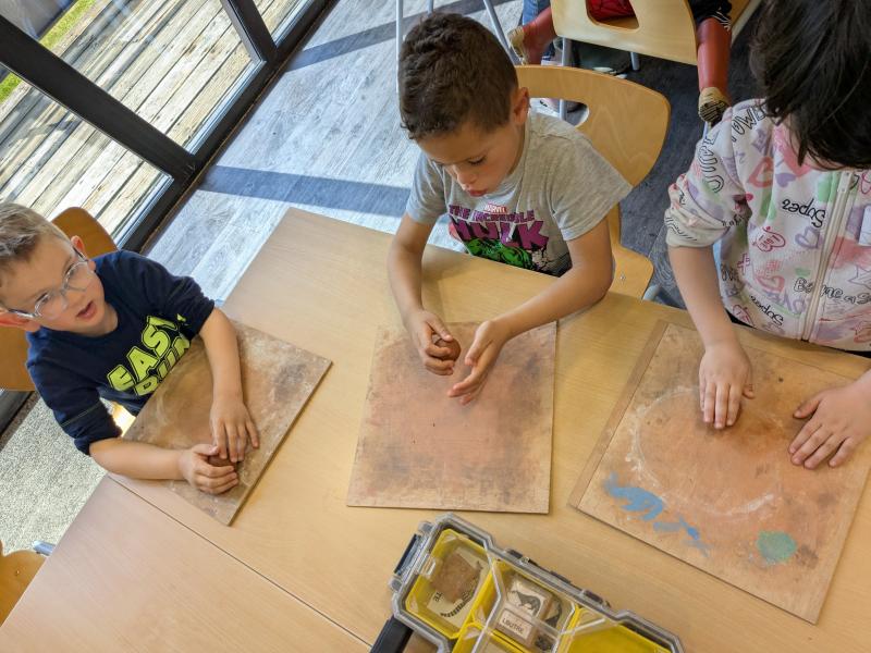 Et enfin nous avons imprimé la trace d’un animal dans de l’argile.