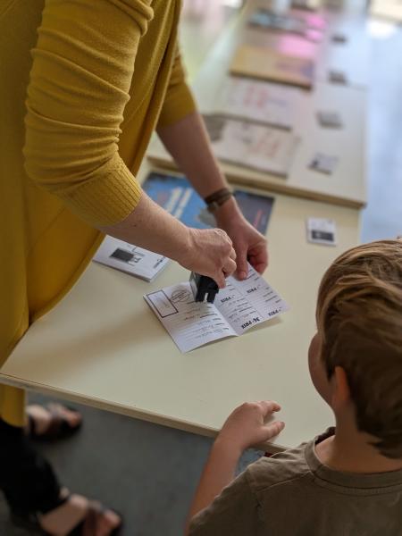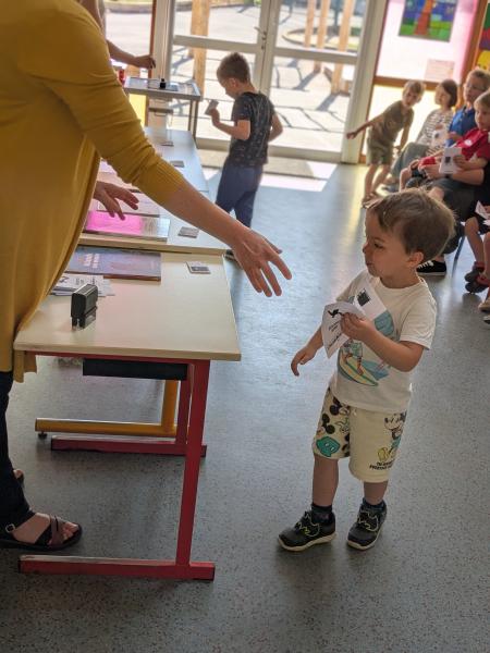 Marie vérifie notre prénom et notre nom puis tamponne la carte.