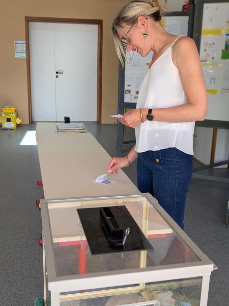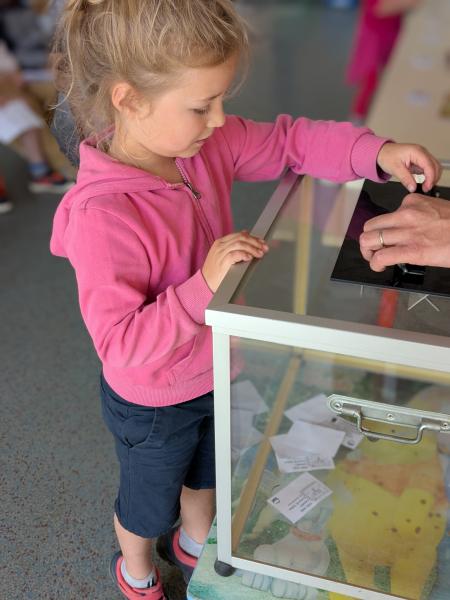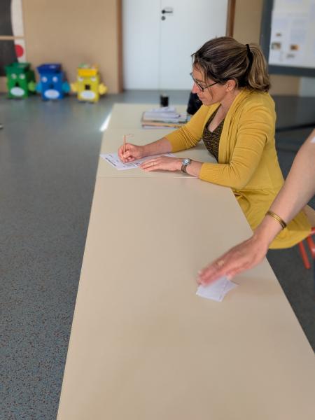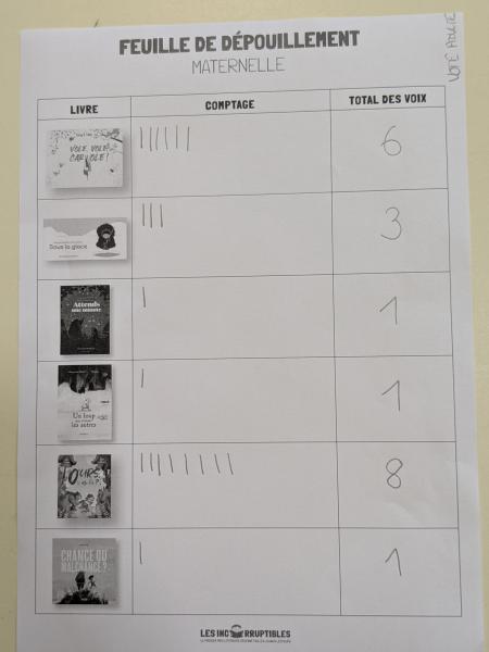 Nadège dit les titres et Marie note les votes. C’est le dépouillement.