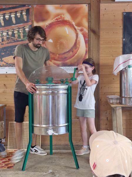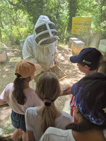 L’après-midi, il a fait très chaud. Nous avons appris des choses sur les abeilles. L’animateur nous a montré l’intérieur d’une ruche. Ensuite, il nous a montré comment fabriquer du miel et nous avons goûté 2 ou 3 miels différents.