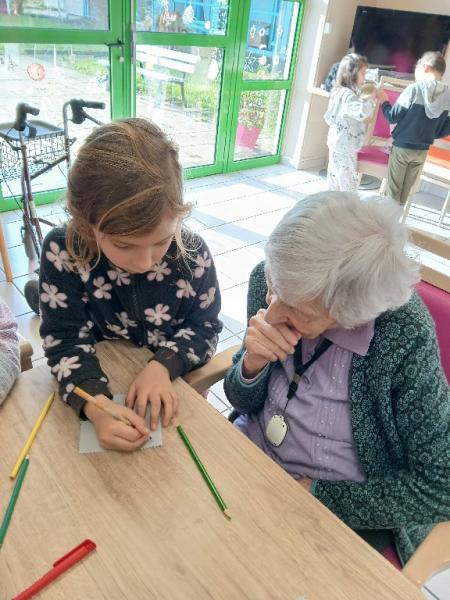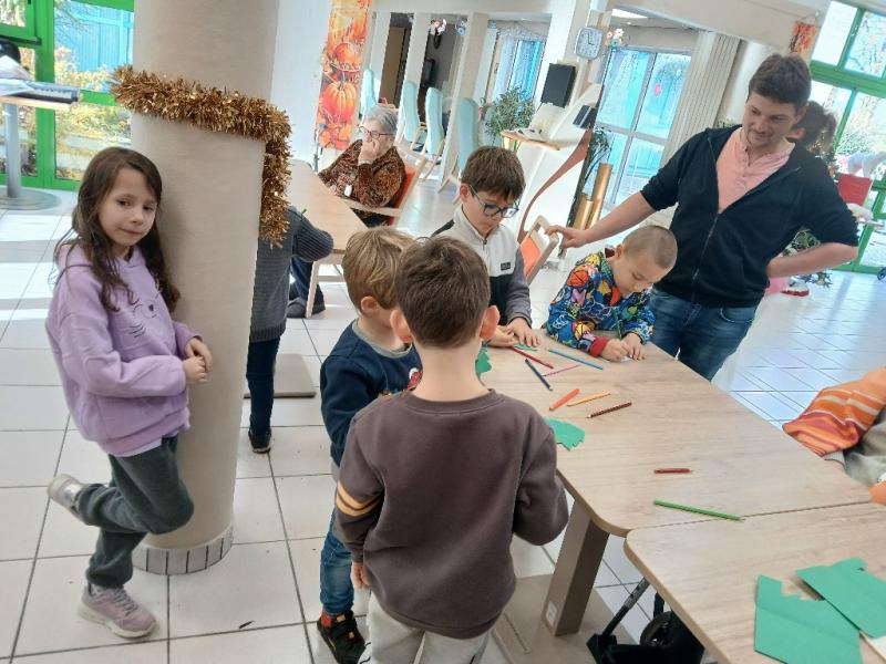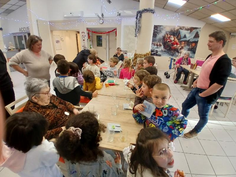Les enfants et les personnes âgées ont réalisé ensemble des cartes de Noël et des décorations sur les vitres. Puis nous leur avons chanté un chant que nous préparions depuis quelques semaines. Enfin, un goûter tous ensemble est venu terminer cet après-midi intergénérationnel, très apprécié de tous !