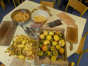 Vendredi, nous avons fabriqué de la compote avec les pommes et les coings ramassés la veille lors de notre sortie nature.