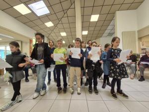 Dans le cadre de la semaine bleue, les élèves de CM1-CM2 sont allés à la maison de retraite de Palluau pour rendre visite à certains de leurs résidents. Ils ont pu chanter une chanson préparée en classe: « Super mamie » d’Aldebert, puis ont écouté leurs ainés chanter un titre de leur répertoire. Tout le monde a …