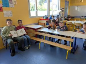 Les élèves de CM1 et CM2 viennent lire des histoires aux élèves de Grande Section chaque lundi en début d’après-midi. Les plus grands, après s’être bien entraînés, s’appliquent à lire à haute voix avec le ton et les plus jeunes sont très attentifs car après ils doivent répondre à des questions ensuite. C’est un moment …