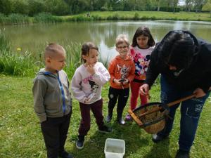 Vendredi 25 avril, les CP sont allés au plan d’eau avec une animatrice, Julie, pour en étudier la faune. Au programme, pêche, observation et identification.