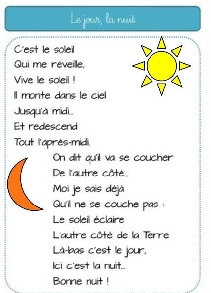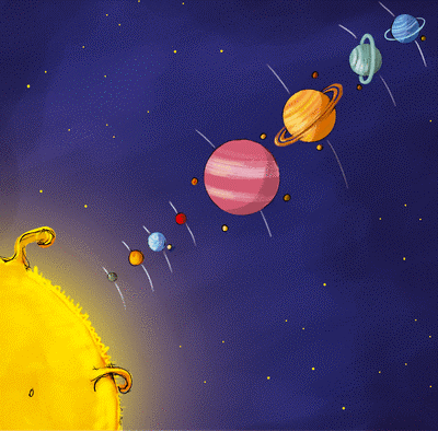 Ce 9eme projet nous emmène dans l’espace! le système solaire, la rotation de la terre autour du soleil, celle de la lune autour de la terre: le jour/la nuit, les saisons!
